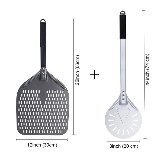 SHANGPEIXUAN 16/14/13/12 Inch Perforated Pizza Peel Rectangular Pizza Shovel Aluminum Hard Coating Pizza Peel Paddle Short Tool – 12inch and 8inch Set