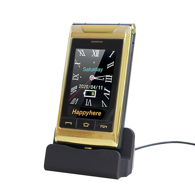 Happyhere F7 flip cell phones 3.0″ touch screen unlocked celular speed dial SOS FM radio senior Push-button cheap mobile phone