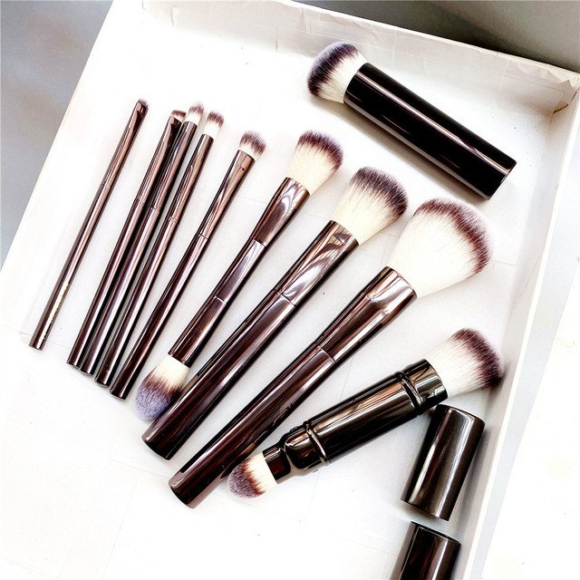Hourglass Makeup Brushes Set – 10-pcs Powder Blush Eyeshadow Crease Concealer eyeLiner Smudger Metal Handle Brushes