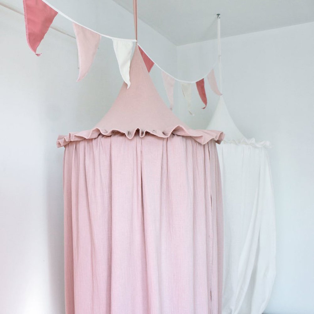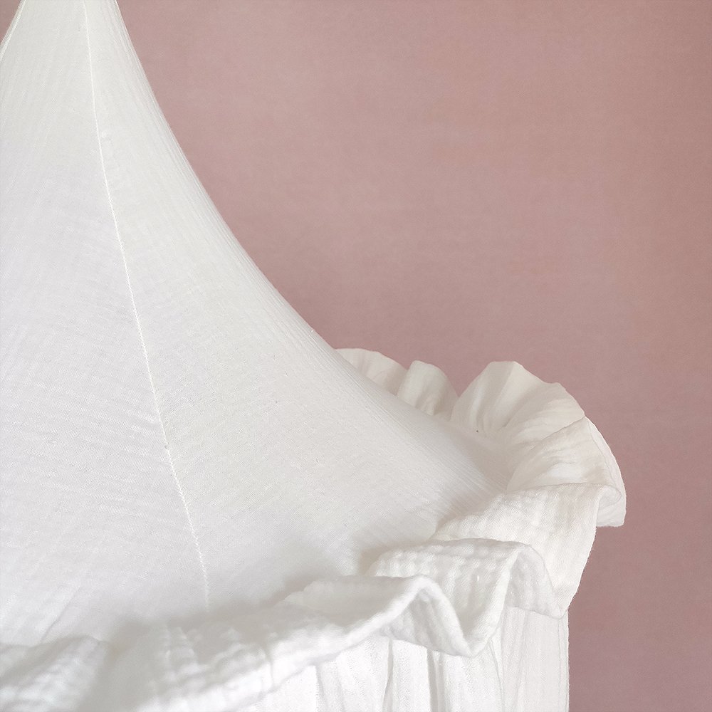 100% Premium Muslin Cotton Hanging Canopy with Frills Bed Baldachin for Kids Room