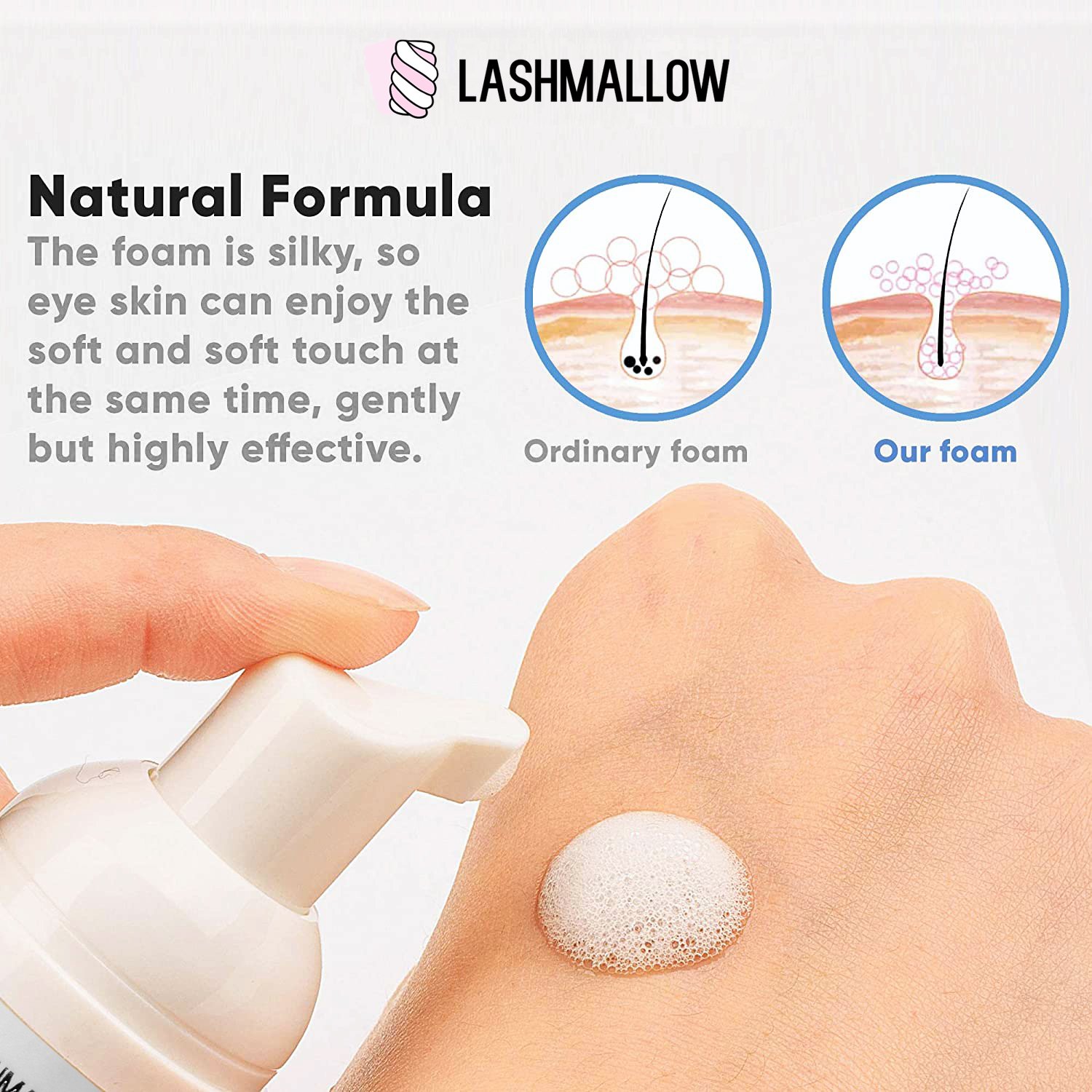 Lashmallow 10 Set Eyelash Shampoo Wholesale Foam Cleanser 60ml Cleaning Mousse with Brush for Lashes Extension Clean Tools