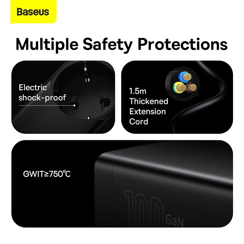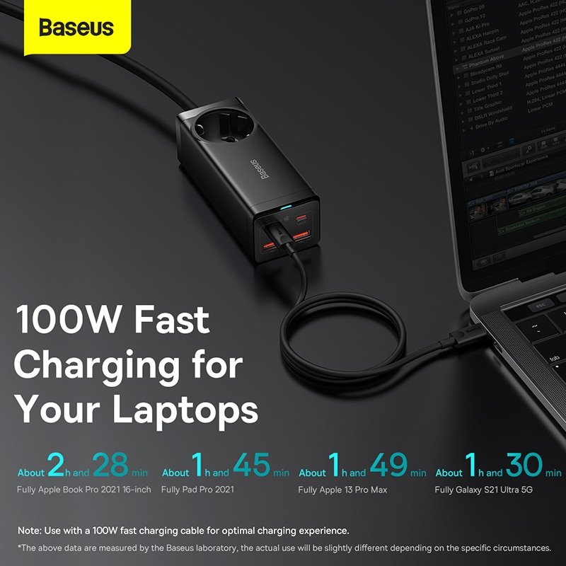 Baseus 100W GaN3 Pro Desktop Charger Power Strip Charging Station Fast Charger For iPhone 14 13 12 Pro Max Xiaomi Samsung Laptop