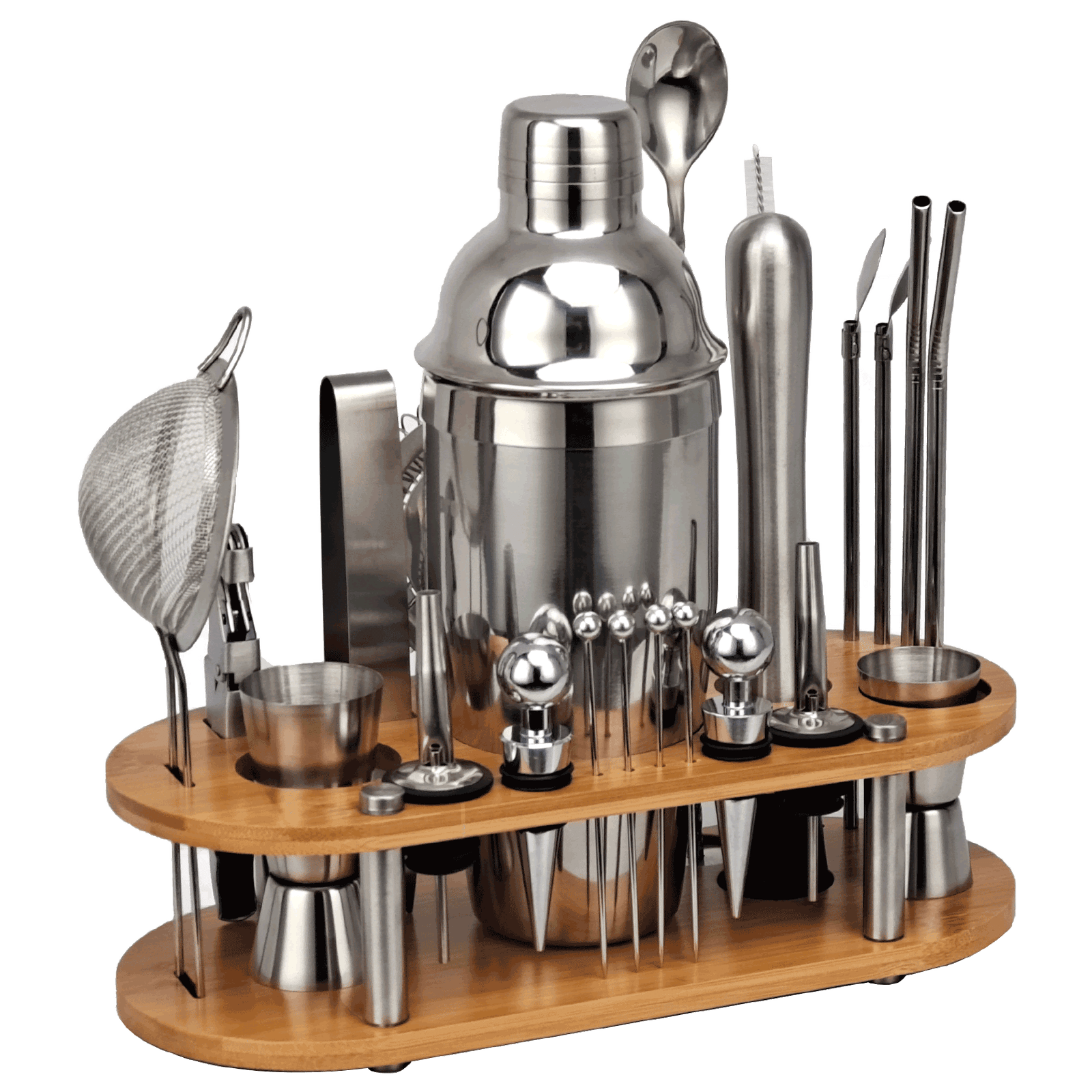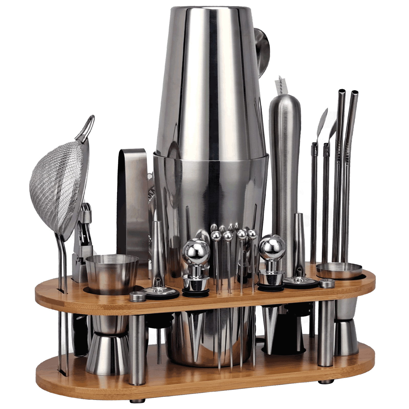 23-Piece Cocktail Shaker Set,Bartender Kit With Oval Bamboo Stand Detachable, Home Bar Tools Stainless Steel ,Perfect Gift