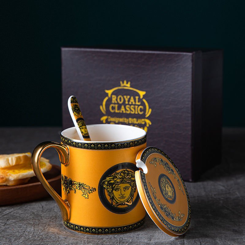 European Style Coffee Travel Mug Spoon With Cover Creative High Value Tea Cup Large Capacity Household Living Room Drinkware