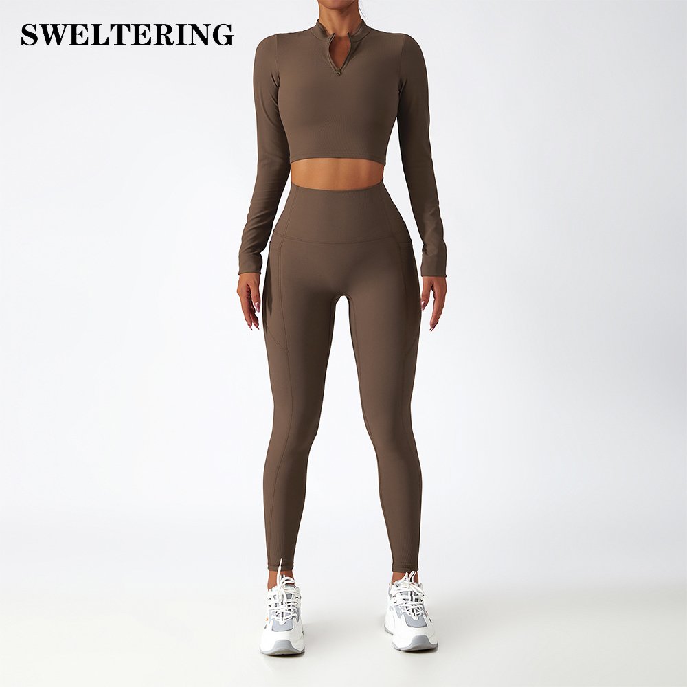 Yoga Set 2 Piece Women Sportswear Workout Clothes Women Sport Sets Suits For Fitness Long Sleeve Seamless Gym Push Up Leggings