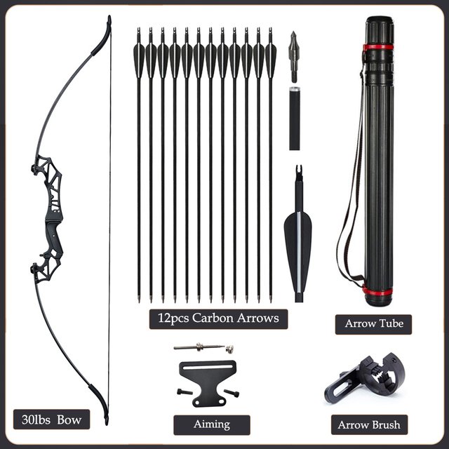 20/30/40/50lbs Archery Bow Recurve Take Down Straight Bow 12pcs Mixed Carbon Arrows Quiver Outdoor Sport Shooting Practice Bow