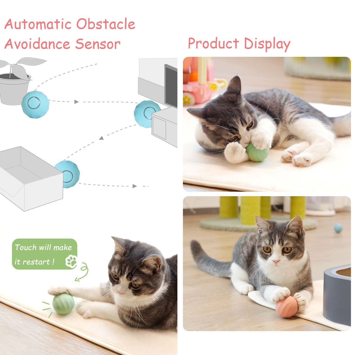 Cheerble Ice Cream Ball Smart Automatic Interactive Ball Auto Rolling Cat Toy for Kittens Home Alone