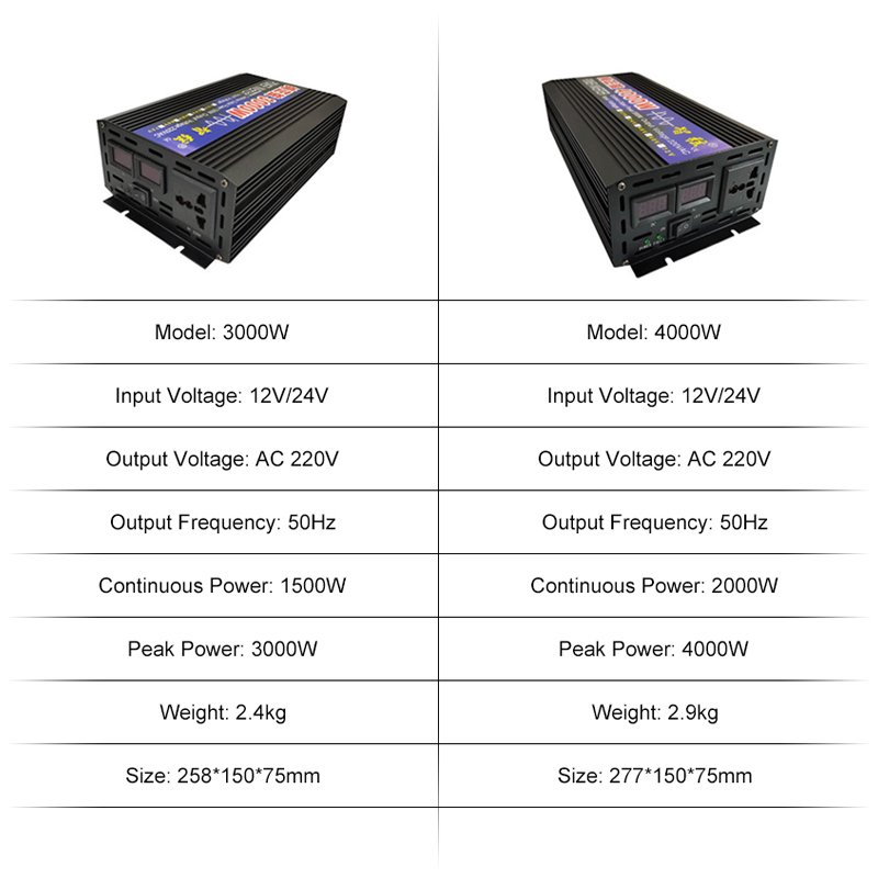 Be the first to review “3000W 4000W Pure Sine Wave Inverter DC 12V 24V To AC 220V 50Hz 60Hz Voltage Transformer Converter Solar Off Grid Power Inverters” Cancel reply