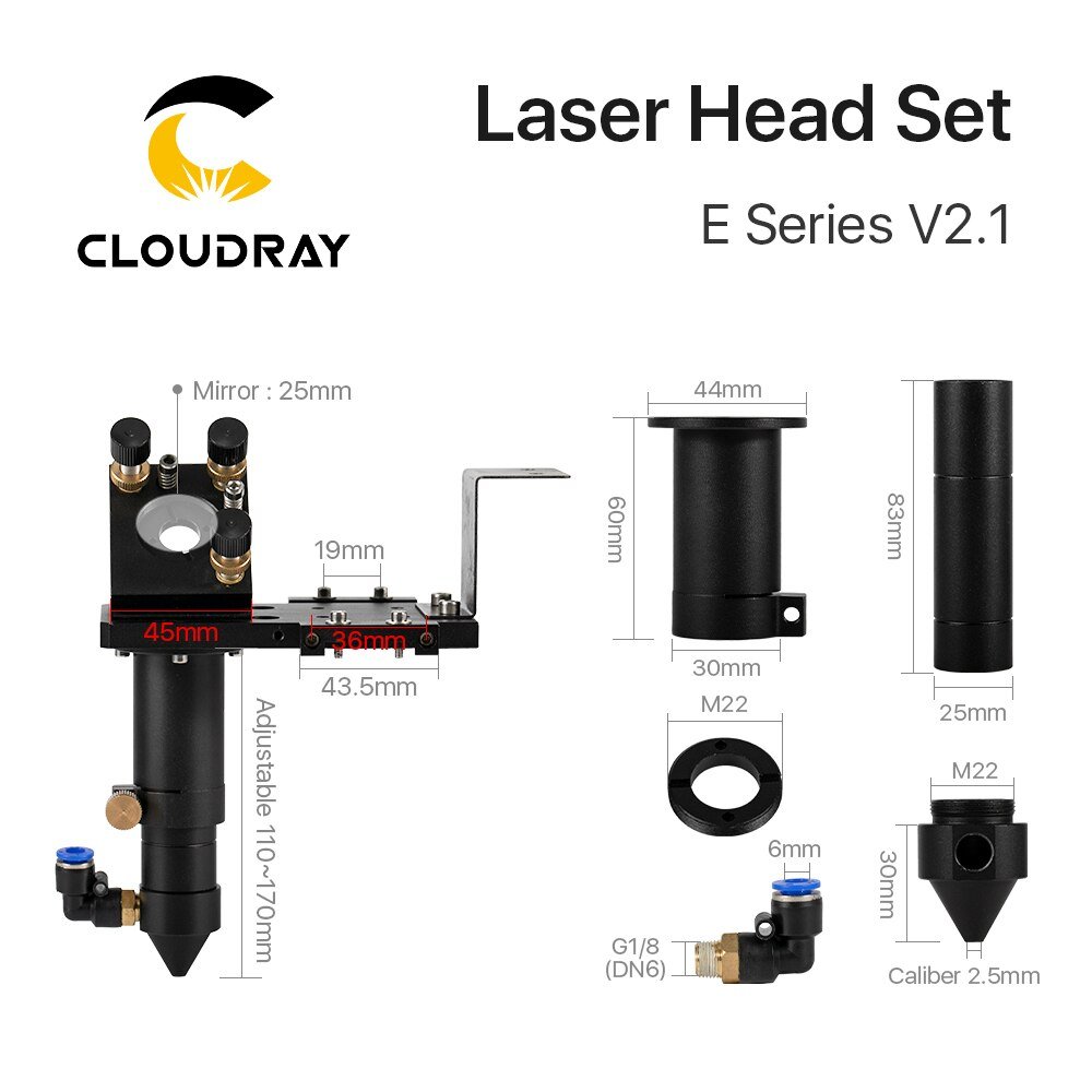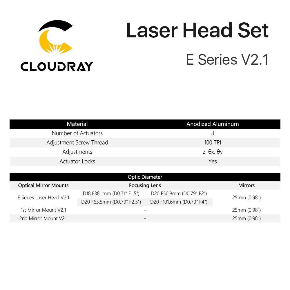 Cloudray E Series: CO2 Laser Head Set 1 Pcs Focusing Lens 3 Pcs Si / Mo Mirrors for Engraver Cutting Machine Parts