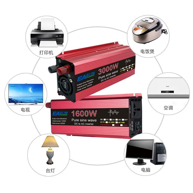 Pure Sine Wave Inverter 12V/24V/48V/60V To AC 110V 220V 3000/2200/2000/1000W Voltage Transformer Power Converter Solar Inverter